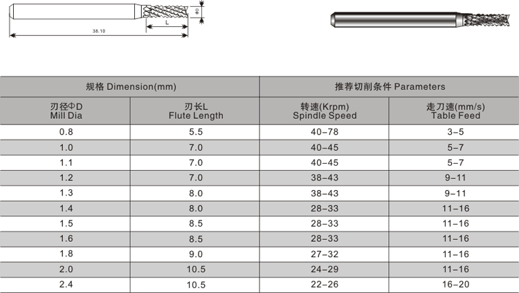 断屑型铣刀,适用于各种普通板材和Hi-Tg板的成型加工,具有高尺寸精度、高进给速、优异的板边质量等特点。