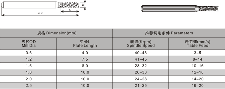 断屑型铣刀,适用于各种普通板材和Hi-Tg板的成型加工,具有高尺寸精度、高进给速、优异的板边质量等特点。